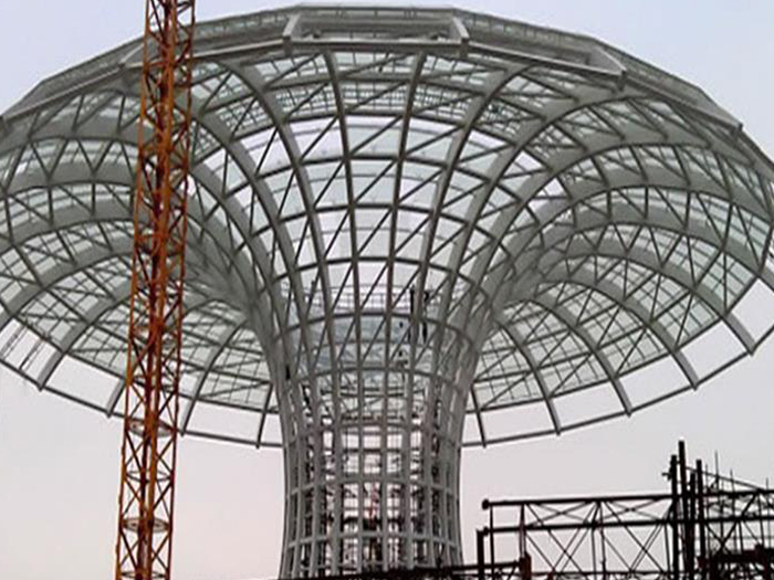 二、球形网架结构因其结构新颖,受力合理,自重轻、用钢量低等优点。如大型体育场馆球形义马螺栓球网架、公共场馆球形网架、电厂义马螺栓球网架、水泥工业球形网架、仓储物流球形网架、义马干煤棚工业球形网架、义马收费站义马加油站球形网架、展览中心、影剧院、商场、航站楼、候车厅、工厂义马车间、仓库、电视塔等球形螺栓球节点网架。国内球形网架结构主要分为:义马焊接球节点网架及螺栓球节点网架两种。螺栓球节点网架其构件工厂内加工量较大,现场安装便捷,适用于现场工期紧,义马施工条件、用电量受制约,网架形状复杂、义马杆件定位困难的异形结构。螺栓球节点球形网架系统基本由义马杆件、螺栓球、支撑支座等组成。按照节点形式可分为交叉义马桁架体系、四角锥体系、三角锥体系等。支撑方式多为固定支座支撑。对于大面积、大跨度及有特殊受力或伸缩要求的网架结构可采用橡胶支座、滑移支座、球铰支座等支撑形式,以满足结构自身的受力稳定、均衡,便于内力释放等设计要求。